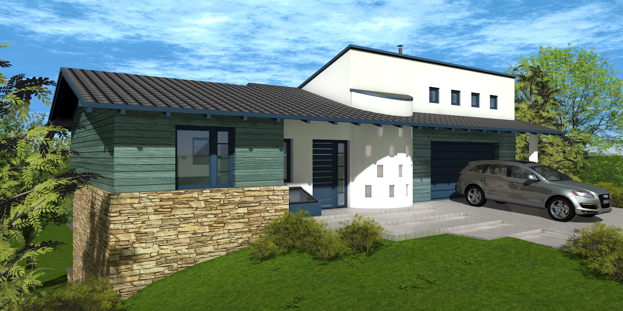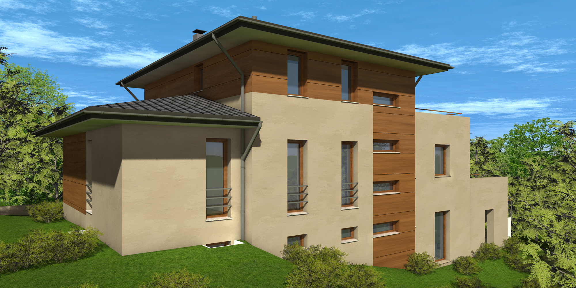 Niedrigenergiehaus in Gerasdorf bei Wien. Nutzfläche in 3 Ebenen: 250 m2