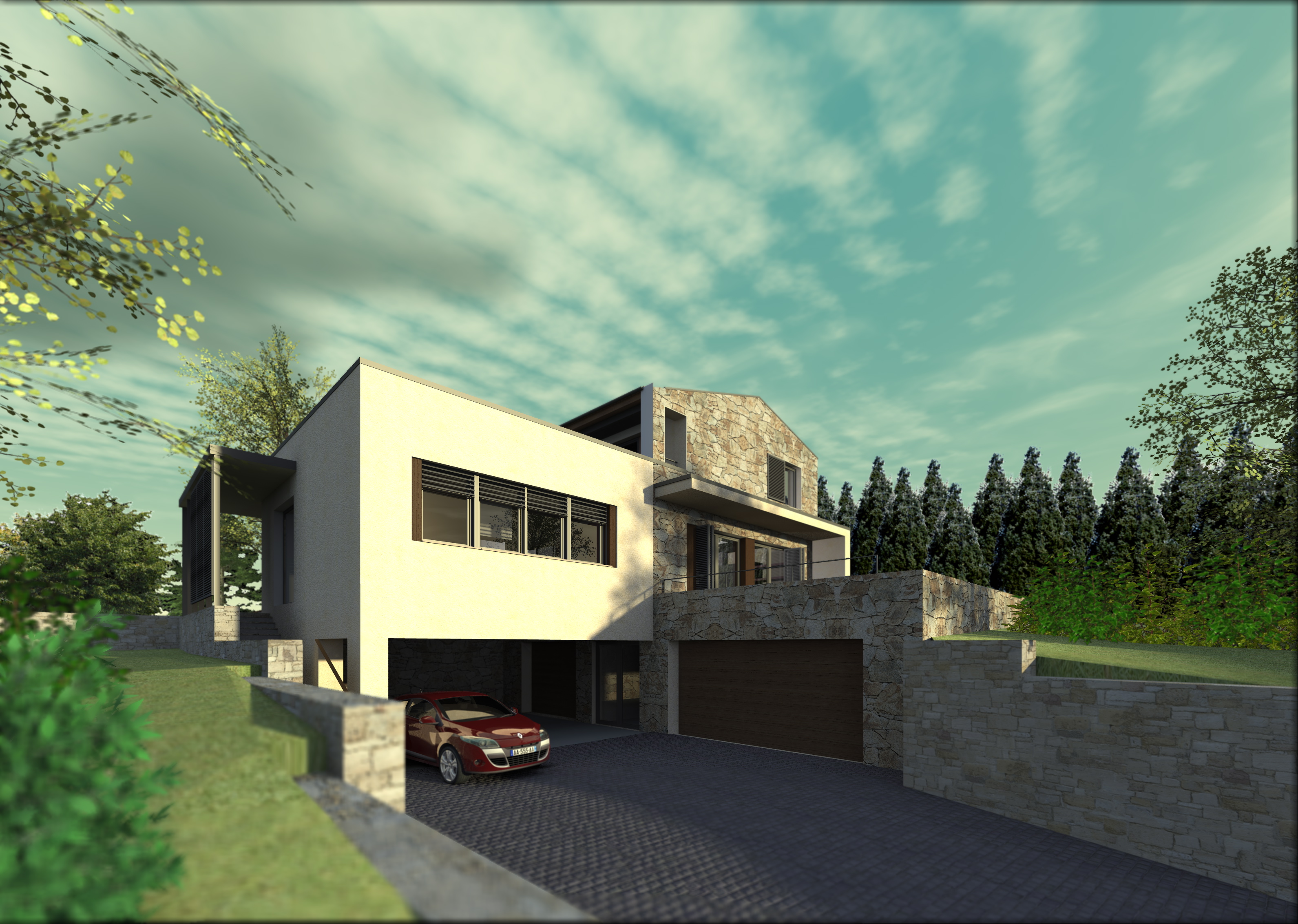 Einfamilienhaus mit Rechtsanwaltkanzlei, Panorama über die Stadt - 282 m2 Wohnfläche + 40 m2 Garage + 18 m2 Büro