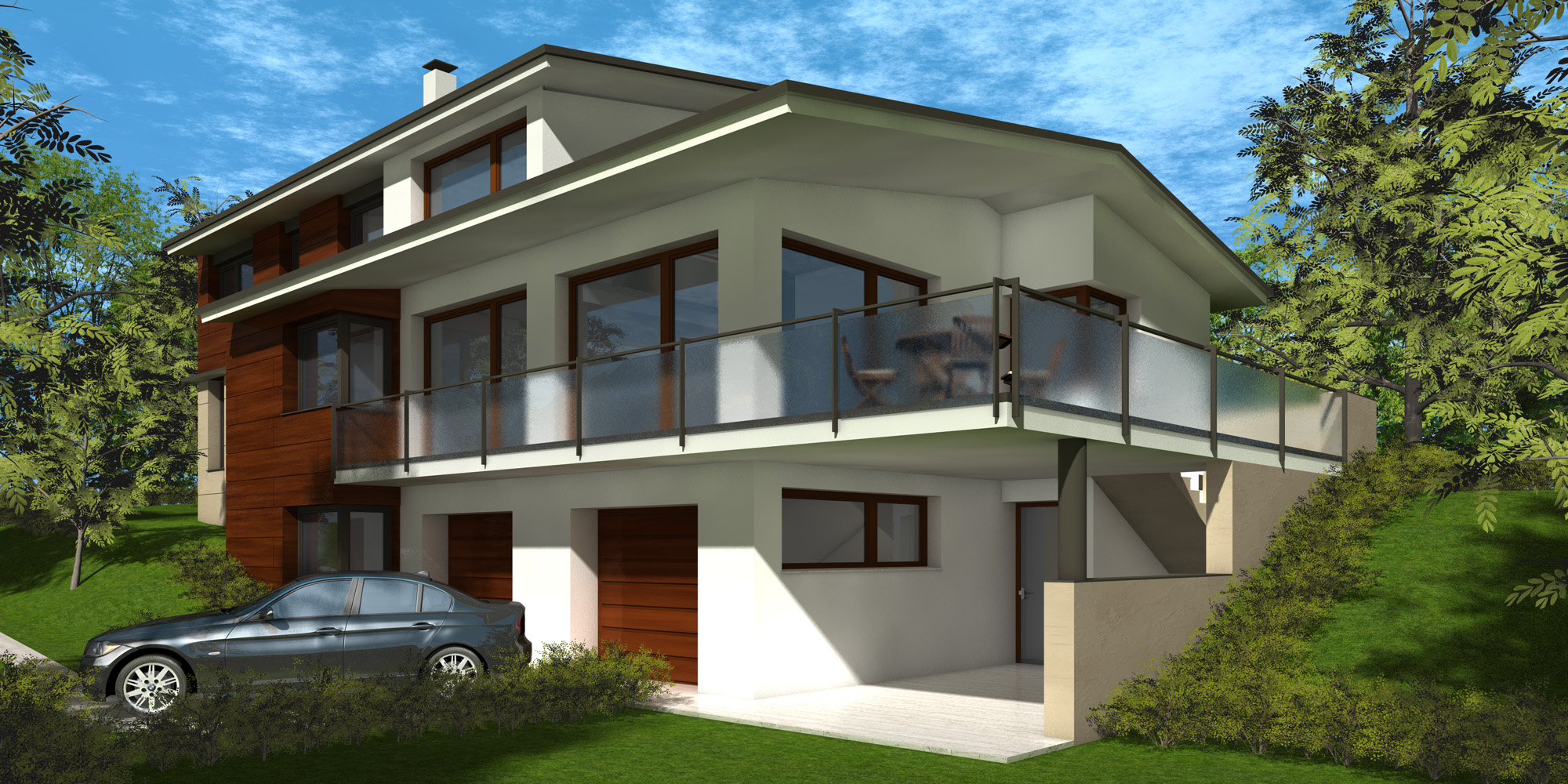 Einfamilienhaus in steiler Hanglage, mit Wellness-Etage - 160 m2 Wohnfläche + 44 m2 Garage + 160 m2 Wellness
